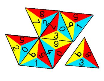 The triangle number game is the most versatile mathematics game for primary children. The game is played much like dominoes, where numbers are matched to each other to make a pattern. Two sides of the triangles are put together according to a chosen rule. In the example below, the ‘rule’ is that the two numbers must add up to 9.
