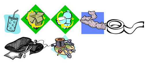 Before this activity, ask your pupils to bring in scrap materials. Collect some yourself. Scrap materials might include: tin; cardboard; string; tape; straws; plastic bottles; fabric; paper; netting; wire.