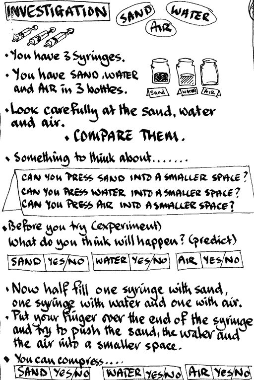 She follows this up with a lesson where she uses syringes to demonstrate compressibility in liquids compared to solids (sand) and air (see Resource 2: Lesson plan).