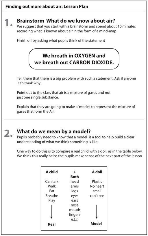 The heart of the lesson was the teacher guiding the step-by-step investigation of the properties of an ‘unknown’ powder (powdered clay). First, the teacher focused on developing the skills of observation and communication in her pupils. Then she asked: ‘What will happen if we add a few drops of water to the powder?’ Pupils’ answers led to more investigation, observation and communication. On reflection, it was clear that the pupils were thinking and acting scientifically.