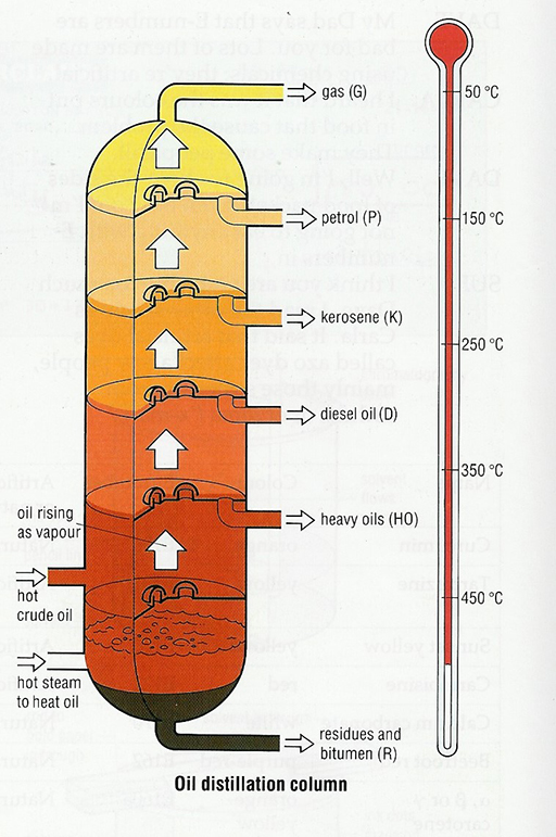 Petrol (P) Fuel for cars, pesticides, drugs, plastics, fertilisers, detergents, solvents, making other chemicals