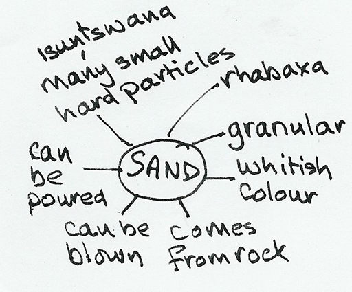First she got her pupils to do a quick spider diagram of their observations and knowledge about sand and this is what one of the better groups produced.