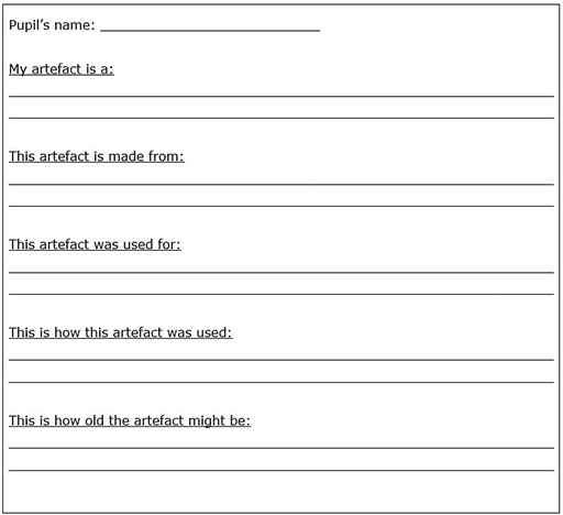 • Ask your pupils, in pairs, to produce a sheet (see Resource 2: My artefact) to display with the artefact.