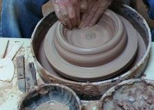 An example using a pottery wheel Clay can be made into vessels because of its unique physical properties. The molecular structure of clay means it has a ‘plastic’ quality, allowing it to be shaped into an infinite variety of forms. Subject these forms to sufficient heat and they are altered into a rock-hard material, making them both functional and durable. Clay is composed of the most common elements found in the Earth’s crust and, as a result, is found throughout the world, beneath our feet. Clay was put to use by nearly every culture, often with extraordinary results. Pots can be made with bare hands using clay lubricated with water. | Centering the clay on the kick wheel ![]() |