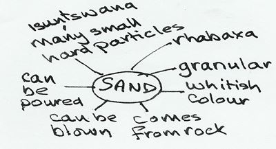 First she got her pupils to do a quick spider diagram of their observations and knowledge about sand and this is what one of the better groups produced.
