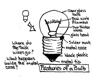 Now show them the model you have made of the torch bulb. Ask: What do they think they would find, if they could open up the metal case? What would be inside? Where do the two wires go? Give them some time to think.