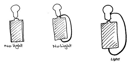 They think, ‘No! But it needs some wires! Or a wire!’ Then they link a piece of connecting wire from the base of the cell to the top of the cell. It still doesn’t work.