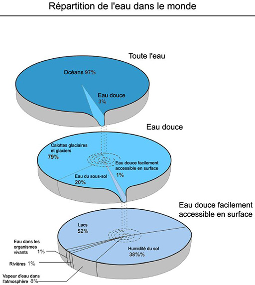La consommation d'eau globale a été multipliée par six entre 1900 et 1995 – plus de deux fois la croissance de la population – et continue à augmenter puisque les demandes de l'agriculture, de l'industrie et les demandes domestiques ne cessent de croître. 70% de l'eau utilisée dans le monde est destiné à l'agriculture. Nous aurons besoin d'encore plus d'eau si nous voulons alimenter la population mondiale croissante, puisqu'il est prévu qu'elle passera de 6 milliards d'individus aujourd'hui à 8,9 milliards en 2050.