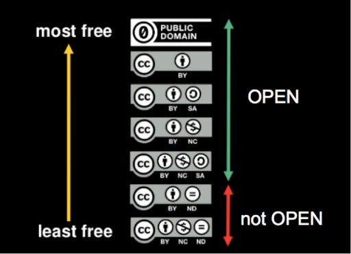 ထိုလိုင်စင်များကို ပေါင်းစပ်နိုင်ပါသည်။ ဥပမာ - ဤစာပိုဒ်၏ အထက်တွင် ပြန်ဖန်တီးထားသောပုံကို CC BY-SA လိုင်စင်ဖြင့် ထုတ်ထားခြင်းဖြစ်သည်။ ဆိုလိုသည်မှာ မူရင်းရေးသားသူကို အသိအမှတ်ပြု ဖော်ပြခြင်း၊ တူညီသော သဘောတူခွင့်ပြုချက်နှင့်အညီ မျှဝေခြင်းကို ပြုလုပ်နေသရွေ့ ဤသင်တန်းတွင် ပြန်လည်အသုံးပြုနိုင်သည်။ ရေးသားသူသည် အရင်းအမြစ်ကို သင့်တော်သလို ပြုပြင်ခြင်း (မူရင်းပုံ မှ ဖြတ်ယူထားသည်ကို သတိပြုပါ) သို့မဟုတ် စီးပွားဖြစ် အသုံးပြုခြင်းအတွက် မည်သည့်ကန့်သတ်ချက်မှ ဖြည့်စွက်မထားပါ။