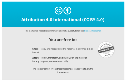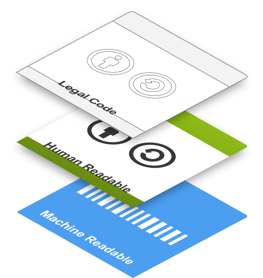 လိုင်စင်၏ မတူသောအလွှာများကို မည်သည့်နေရာတွင် ရှာတွေ့နိုင်မလဲ သိရန် CC BY 4.0 International licence ကိုကြည့်ပါစို့။ ယင်းသည် သာမန်လူများနားလည်နိုင်(human-readable)သည့် ပုံစံဖြစ်သည်။