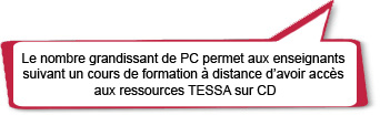 | Comment les enseignants ont accès au matériel pédagogique TESSA | Nouveau manuel pour en- seignants qui inclut plusieurs sections de TESSA | Site internet et sections du matériel TESSA imprimées | Site internet ou CD |