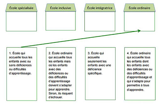 • Activité 2 :        Quel type d’école fait quoi pour permettre à tous les enfants d’apprendre ?
