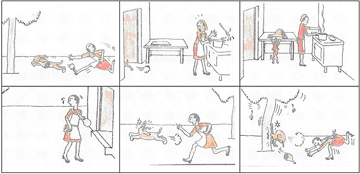 لكل مجموعة اسم حيوان. تقول وهي ترفع يدها "أرفعوا أيديكم". وتقول وهي تشير إلى صندوق الكتب "خذوا الكتب من الصندوق". وتقول "أجلسوا، كل واحد يقرأ لزميله"؛ إذا شعرت بأنهم غير متأكدين من المطلوب، تمثل لهم بالإشارات ما يجب أن يقوموا به.