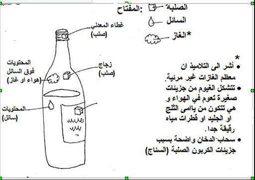 اطلب من التلاميذ استعمال أقلام بألوان تختلف عن ما سبق. سلم للتلاميذ مقطرات للماء، أو اظهر لهم زجاجة صغيرة من الماء. هنا أدناه بعض الأسئلة التي يمكنك طرحها على التلاميذ: