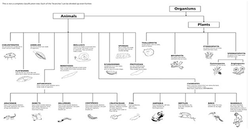 وهذا هو ما ينطبق على علم الأحياء. ينبغي عليك كمُعلّم مساعدة طلابك على تطوير صورة كبيرة مفيدة للكائنات الحية وعلاقتها ببعضها البعض. ومن الأهمية بمكان أن نشير إلى وجود نظام تنظيمي متفق عليه قام العلماء بتطويره على مدار السنين. المورد 2:التصنيف الحالي المعتمد للكائنات الحية يبين كيفية قيام علماء الأحياء بتنظيم الكائنات الحية إلى ممالك وبعض الأقسام الفرعية (الشُّعب) المندرجة تحتها.