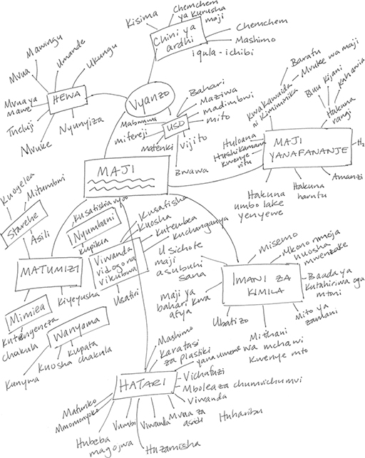 Nyenzo-rejea ya 2: Kielelezo charamani ya mawazo shughuli ya kwanza- tengeneza ramani ya mawazo kuhusu kila kitu tunachokijua kuhusu maji