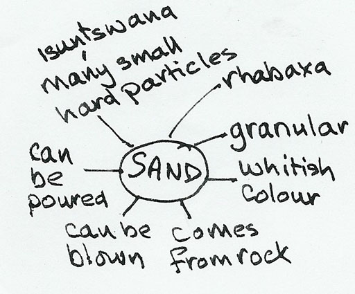 Awali ya yote aliwataka wanafunzi wake kuachora picha ya uchunguzi na maarifa yao kuhusu mchanga na hii chini ni ile iliyotolewa na kundi lililofanya vizuri.