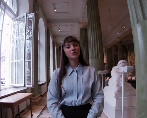 El presentador lleva la grabación al interior del edificio«Actualmente, las migraciones a menudo se consideran algo negativo, especialmente para países que reciben inmigrantes». Nos encontramos en Varsovia, la capital de Polonia, una ciudad considerada históricamente como refugio de inmigrantes religiosos, judíos en particular.