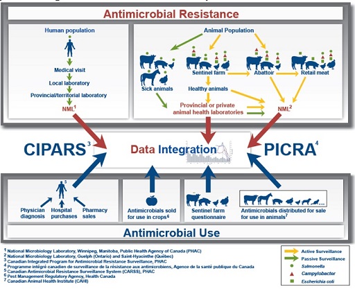 Figure 10: © All rights reserved. Canadian Integrated Program for Antimicrobial Resistance Surveillance (CIPARS) 2016 Annual Report, Public Health Agency of Canada, 2016. Adapted and reproduced with permission from the Minister of Health, 2021.