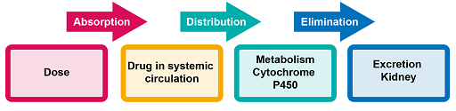 AMU and the design of effective dosage regimens are based on the relationship between the administered dose of a drug, the resulting drug concentrations in various body fluids and tissues, and the intensity of pharmacologic effects caused by these concentrations. The journey of the antimicrobial through the body occurs in steps: absorption, distribution, metabolism and elimination (ADME). This is shown in Figure 5 and described in more detail below.