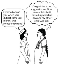 Qualitative research is a type of research that utilises qualitative (descriptive) data and seeks answers to questions such as ‘Why?’ and ‘How?’ It is concerned with what people think and how they feel. For example, you might need to know why some parents are not bringing their children for immunizations, or why some pregnant women are reluctant to see you for antenatal care (Figure 10.4). You may need to conduct interviews or focus groups to find the answers, which you will report by writing about your findings.