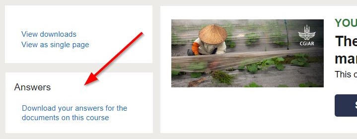 You might like to download the notes you have made during the course and take them away with you after you have finished. You do this by clicking 'Download your answers for the documents on this course', as shown in the illustration below. This will generate a .pdf file that you can download.