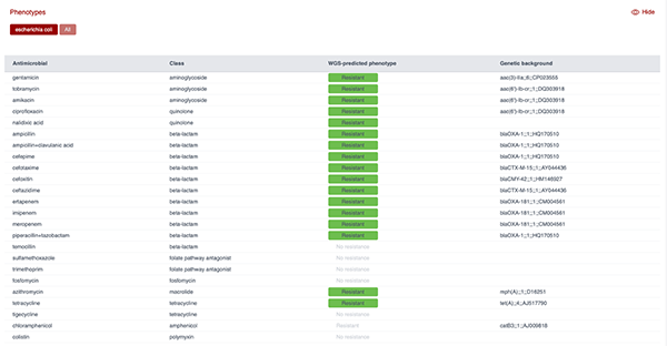 • Treatability: WGS identifies AMR genes and point mutations (resistance determinants) that can be used to predict which antibiotics are likely to work, or not work, against an infection.