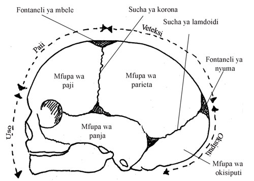 6.3 Kueleza sifa kuu za fuvu la fetasi na umuhimu wa sifa hizi katika leba na kuzaa. (Maswali ya Kujitathmini 6.1, 6.2 na 6.3)