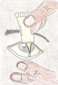 Iwapo njia ya uzazi ya mama ina bakteria zinazosababisha magonjwa ya zinaa (hasa klamidia na kisonono), viini vya maambukizi haya vinaweza kuingia machoni mwa mtoto wakati wa kuzaliwa na hivyo vinaweza kusababisha upofu. Chunguza ubaini kama kuna uvimbe wa kope, wekundi kwenye sehemu ya ndani ya macho au mchozo kutoka machoni. Unaweza kumpa profilaksisi (matibabu ya kuzuia maambukizi) punde anapozaliwa. Matibabu haya yanaweza kufanywa kwa kutumia tetracycline au lihamu nyingine ya macho iliyopendekezwa, kama ilivyoonyeshwa katika Mchoro 6.4. Lakini iwapo mtoto huyu ameambukizwa macho baada ya kuzaliwa, mpeleke rufaa hadi hospitalini au katika kituo cha afya kwa uchunguzi au matibabu ya kina.