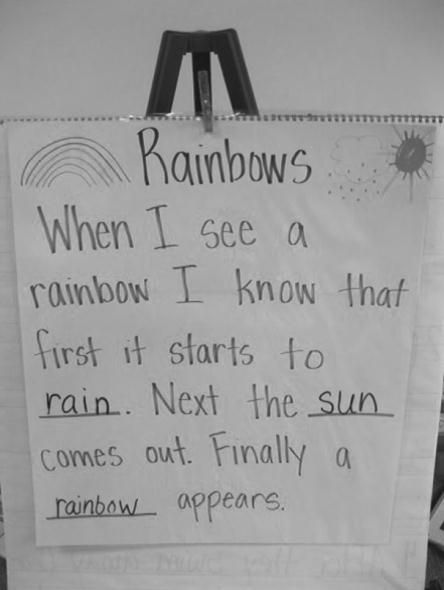 You can make a shared reading text on any subject, such as parts of the body, numbers, a history or geography topic, or the words of a song. See the hand-made example in Figure 2.