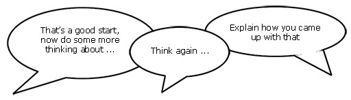 The dialogue that you have with your students helps their learning. If you tell them that an answer is incorrect and finish the dialogue there, you miss the opportunity to help them to keep thinking and trying for themselves. If you give students a hint or ask them a further question, you prompt them to think more deeply and encourage them to find answers and take responsibility for their own learning. For example, you can encourage a better answer or prompt a different angle on a problem by saying such things as: