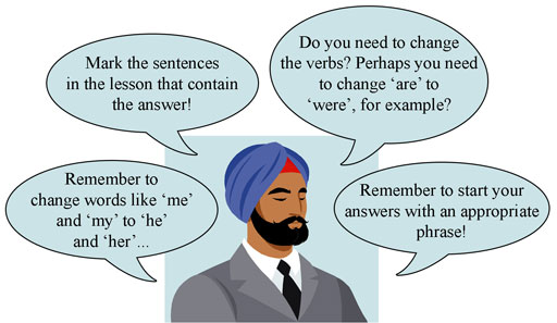 I showed them how to organise the points into an appropriate answer, with a proper beginning and ending. I also made sure that they noted the change of the tense of the verb when writing an answer: ‘are’ would change to ‘were’, and so on. After making the necessary changes in the sentences, this is what they got: