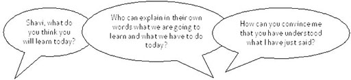 When you decide what the students must learn in a lesson or series of lessons, you need to share this with them. Carefully distinguish what the students are expected to learn from what you are asking them to do. Ask an open question that gives you the chance to assess whether they have really understood. For example: