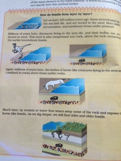 Figure 2 is from the Class X textbook. It uses a series of pictures and associated text sections to show how fossils were created and how they can now be found. It is a good resource for an unscrambling activity.