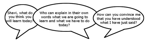 When you decide what the students must learn in a lesson or series of lessons, you need to share this with them. Carefully distinguish what the students are expected to learn from what you are asking them to do. Ask an open question that gives you the chance to assess whether they have really understood. For example: