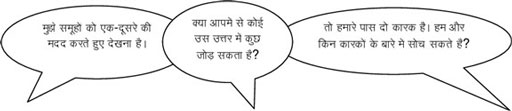 • आरंभ में, विद्यार्थियों को पारिवारिक और सामुदायिक संदर्भों से उदाहरण लेकर, जहां लोग सहयोग करते हैं, जोड़े में काम करने के फायदे बताएं।