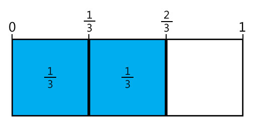 • रंगीन या शेड किए गए, दोंनो आंशिक टुकड़ों को काटना और उन्हें एक साथ इस तरह से तीसरे आयत में रखना जिससे कि वह two divided by three minus one divided by three दिखाए