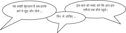 आप बच्चों के साथ जो बातचीत करते हैं, उससे उन्हें सीखने में मदद मिलती है। यदि आप उन्हें सिर्फ यह बताते हैं कि कोई उत्तर गलत है और बात वहीं ख़त्म कर देते हैं, तो सोचने और कोशिश करने में उनकी मदद करने का मौका गँवा देंगे। यदि आप बच्चों को कोई संकेत देते हैं और उनसे आगे भी प्रश्न पूछते हैं, तो इससे आप उन्हें ज्यादा गहराई से सोचने के लिए प्रोत्साहित करते हैं, साथ ही उन्हें उत्तर ढूँढने तथा खुद के अधिगम की ज़िम्मेदारी उठाने के लिए प्रेरित करते हैं। उदहारण के लिए, आप इस तरह की बातें बोलकर एक बेहतर उत्तर के लिए प्रोत्साहन दे सकते हैं या समस्या के किसी अलग पहलू की तरफ संकेत कर सकते हैं: