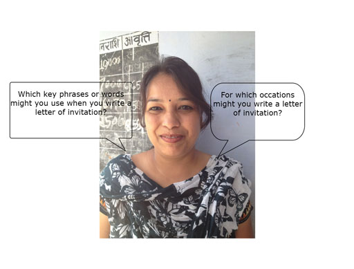 श्रीमती जाधव कक्षा 9 को अंग्रेजी पढ़ाती हैं। उनके छात्र निमंत्रण पत्र लिखने के प्रयास कर रहे हैं। सबसे पहले, सभी छात्रों से निमंत्रण पत्रों के बारे में विचार माँगे।