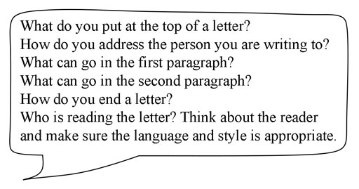 छात्रों ने अपने विचार साझा किए और मैंने उन्हें बोर्ड पर लिखा। फिर मैंने उनसे पत्रों के बारे में कुछ प्रश्न पूछे, और बताया कि उन्हें आम तौर पर कैसे संरचित किया जाता है।