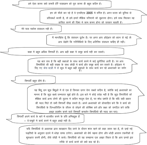 ये सभी सिद्धांत इस बात पर एकमत दिखाई पड़ते हैं कि अध्यापन में बदलाव को प्रभावी रूप देने का अर्थ है अध्यापकों से अपने सुविधा क्षेत्र (यानि जिसमें वे सहज महसूस करते हैं) की सीमाओं को विस्तार देने के लिए कहना। इस राह में उठने वाले प्रतिरोधों को पार करने के लिए अध्यापकों को सहयोग आवश्यक होता है। व्यावसायिक विकास गतिविधियां प्रदान करने हेतु प्रभावी योजना बनाने के लिए संभावित कठिनाईयों को हल करना जरूरी है। नीचे दी गई सूची में अध्यापकों द्वारा सूचित कुछ चुनौतियां बताई गई हैं और यह बताया गया है कि आप उन पर कौन सी संभावित प्रतिक्रिया दे सकते हैं।
