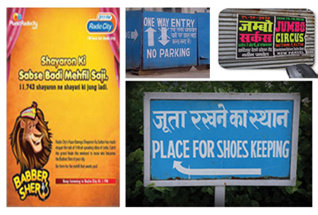 आपने संभवतः देखा है कि अंग्रेजी का उपयोग अक्सर विज्ञापनों में, या तो एकल रूप में पर या अन्य भारतीय भाषाओं के साथ मिलाकर किया जाता है (देखें चित्र 1)। विज्ञापनकर्ता अंग्रेजी का उपयोग इसलिए करते हैं क्योंकि उन्हें लगता है इससे उनका उत्पाद अधिक आधुनिक, अंतरराष्ट्रीय या बिक्री योग्य हो जाता है। अंग्रेजी का उपयोग करना – और अन्य भाषाओं के साथ उसका मिश्रण – विज्ञापन को अधिक रोचक, रचनात्मक या हास्यपूर्ण भी बना सकता है।