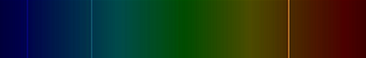 Two bright yellow lines, one weaker blue line, one weaker green line and one weaker red line