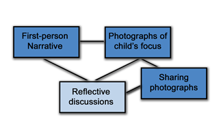 The reflective discussion is first and foremost a place to ask questions. You are drawing on the things you have observed, the conversations you will have had about the photographs and the general experiences you bring with you. These discussions can take place in cafes and kitchens, driving in a car or walking to the park, in a sitting room or an office, a playroom or a hall. Wherever it is the participants need to feel relaxed and capable of sharing private thoughts. But they should happen as soon as possible after you have used the other perspectives.