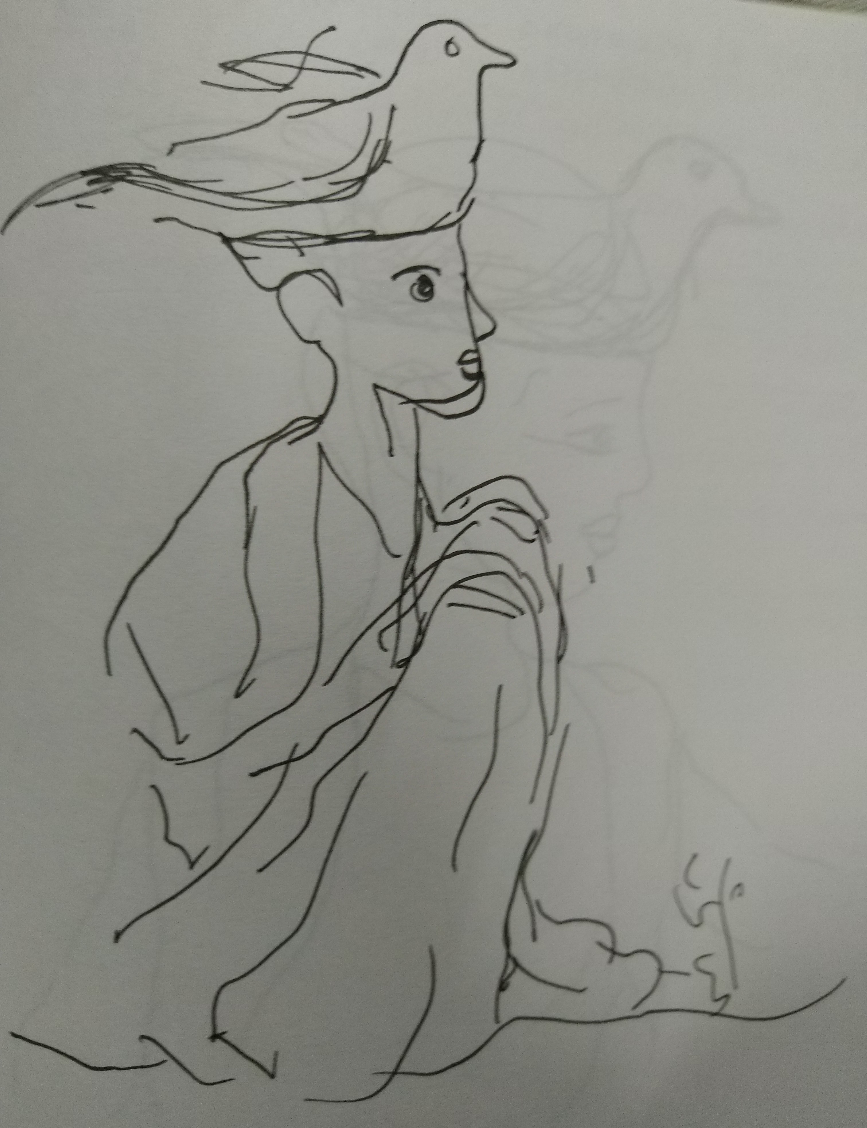 At the beginning of `a landscape,' I did many sketches to design a bird as a character in the play. I wrote about what they must be thinking when they look at the changing landscapes.
