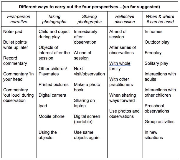 Here are some of the possible variations that you could have noted down. It is likely that you may also have recorded some others. The important point to take from this activity is that the flexibility of In-the-Picture is essential in order to tune-in to different children and the situations that they experience.