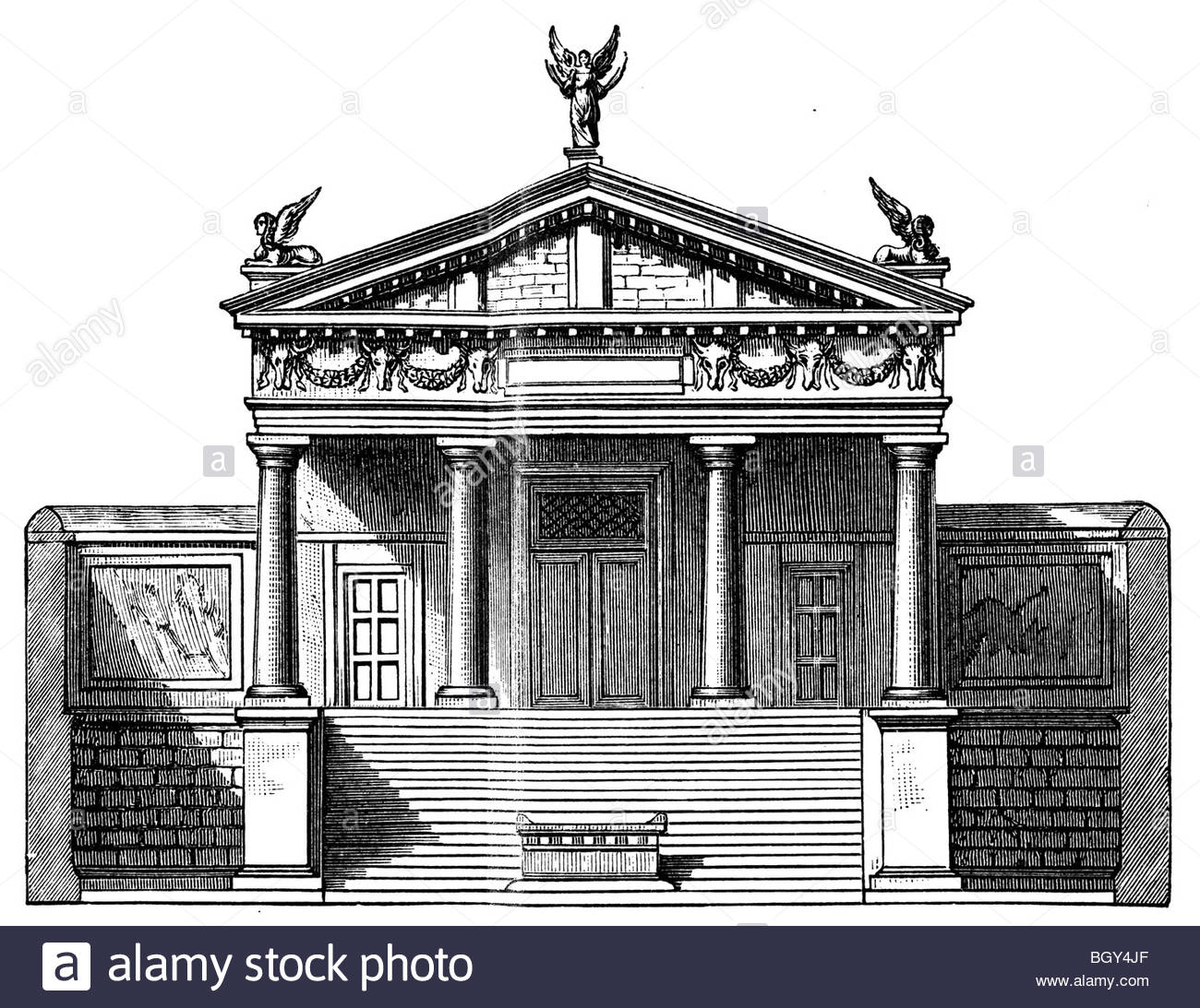 Of the Etruscan temples only the stone foundations were preserved because of the buildings were made of wood. It seems that the Etruscans, although masters of masonry art rejected for religious reasons the use of stone in the construction of sanctuaries, whose layout bears a general resemblance to the simpler Greek temples, but with certain characteristics of their own, partly adopted later by the Romans.