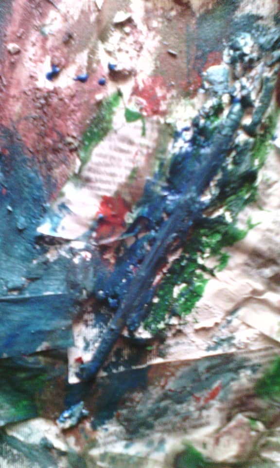 In this assemblage, I used plaster an old paintbrush and some newspaper retails