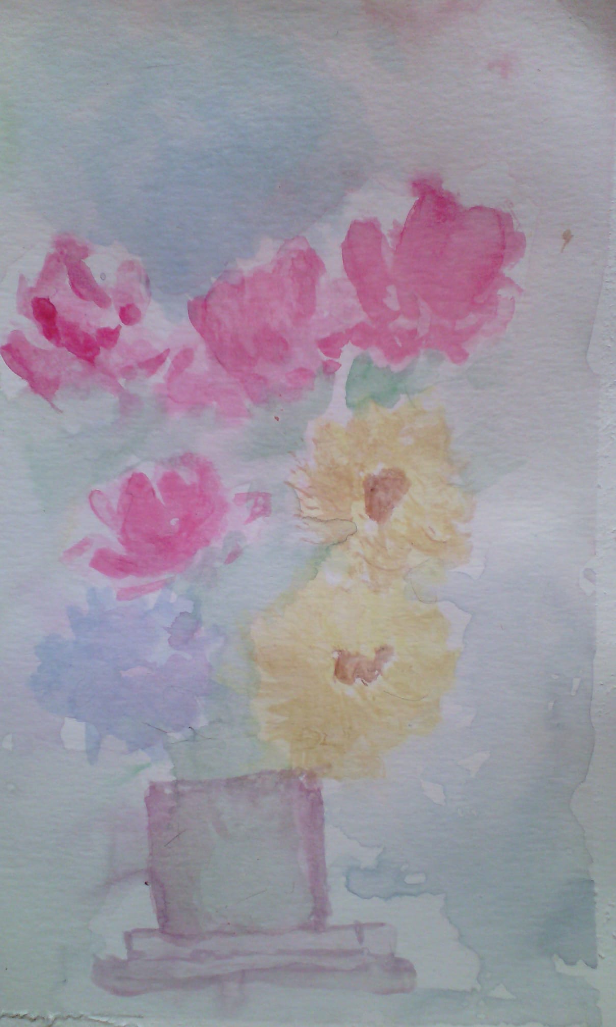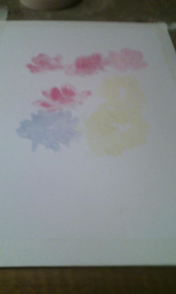 In this stage, you continue doing your imaginary vase of flowers, adding more spots of light colours.