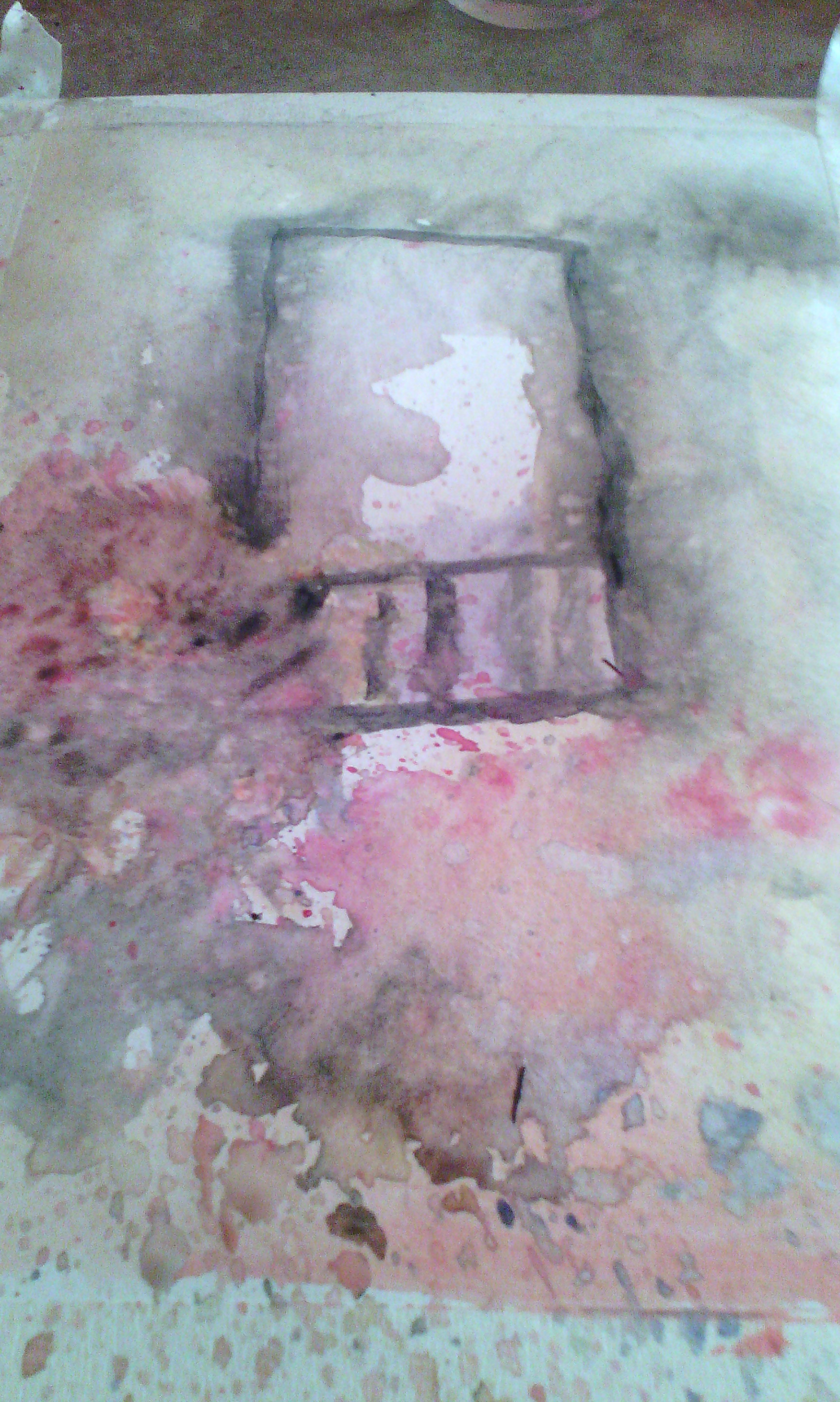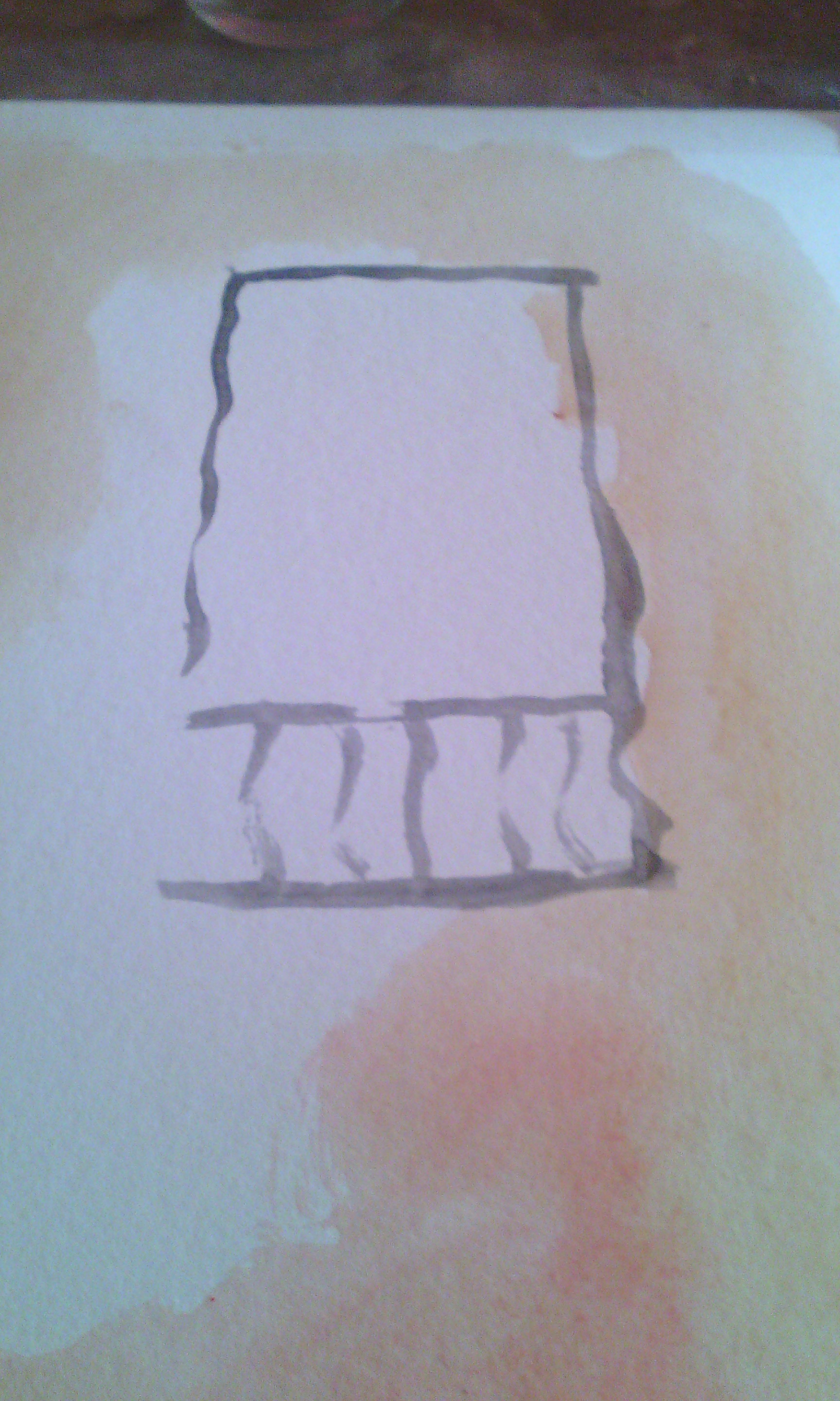 With a wash, apply the ink to paint the wall, but leave some whites in your paper.